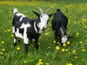 Unsere beiden Ziegen, Wutz und Urmel, 2009 und 2010 geboren, wurden aus schlechter Haltung gerettet. Sie sind Mutter und Sohn. Urmel als Bock hat einen großen Dickschädel und ist manchmal etwas ungestüm. Seine Mama Wutz ist aber lieb und verschmust. Außerdem sind beide begeistert davon, neue Kunststücke zu lernen und uns bei unseren Spaziergängen zu begleiten – aber nur, wenn man genügend Leckerlis in der Tasche hat.